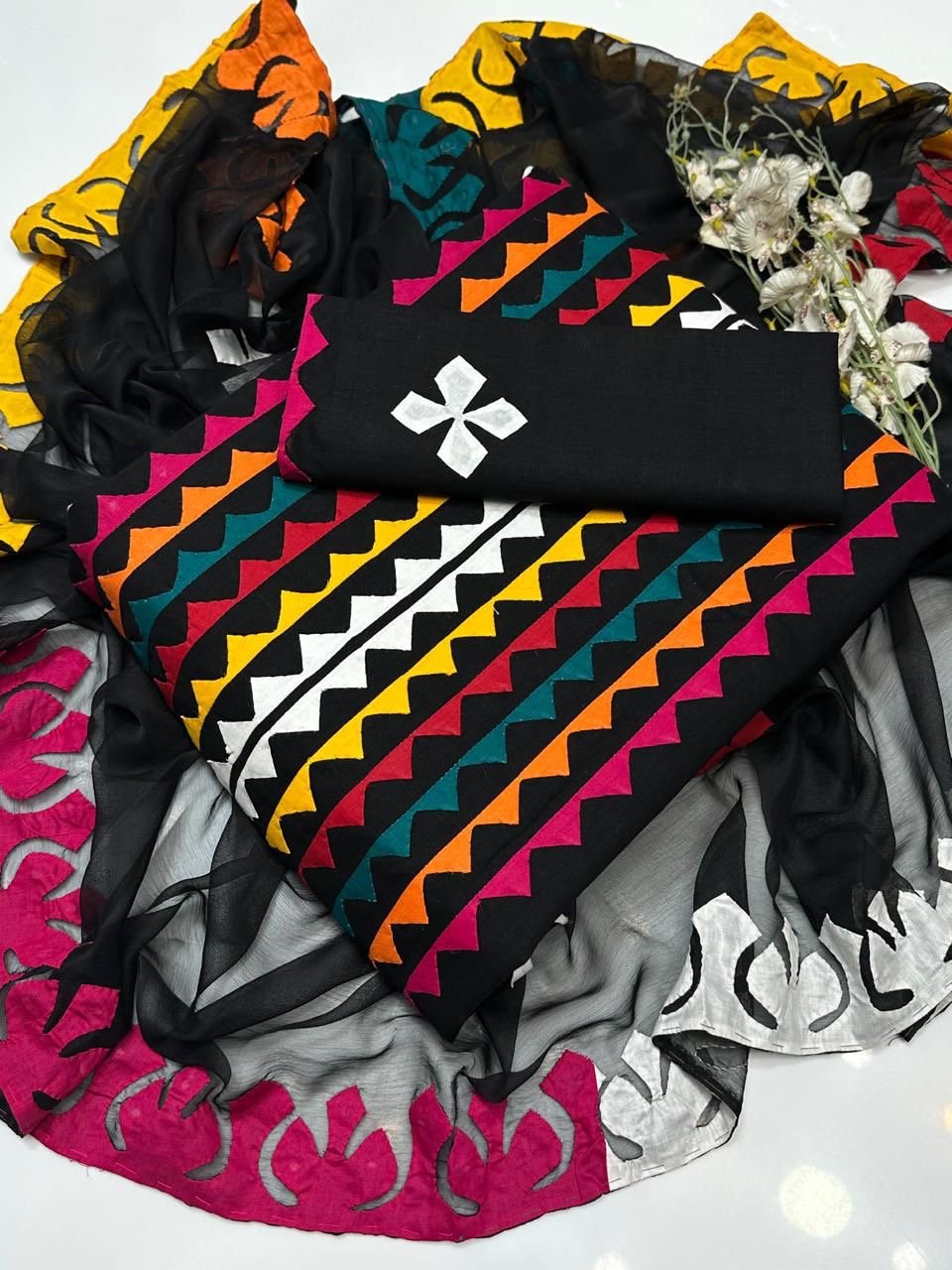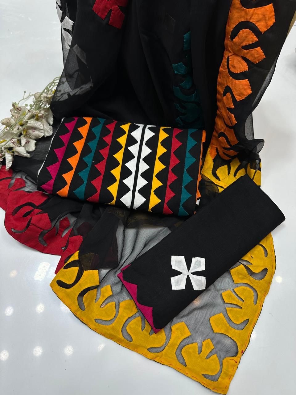 ❇️Shirt Front Lawn With Zig Zag Panel Applique Work