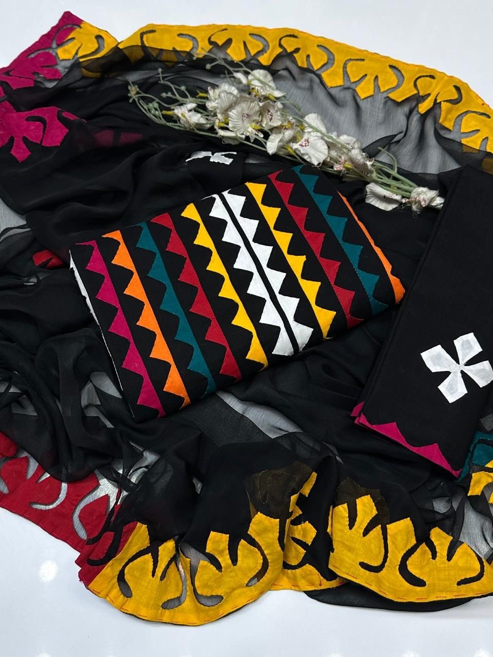 ❇️Dupatta Crinkle Chiffon 4 Side Heavy Applique Work